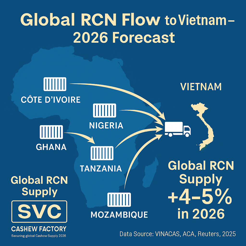 As Vietnam’s cashew industry prepares for the 2026 season, securing raw cashew nut (RCN) supply remains the most decisive factor in maintaining global competitiveness.